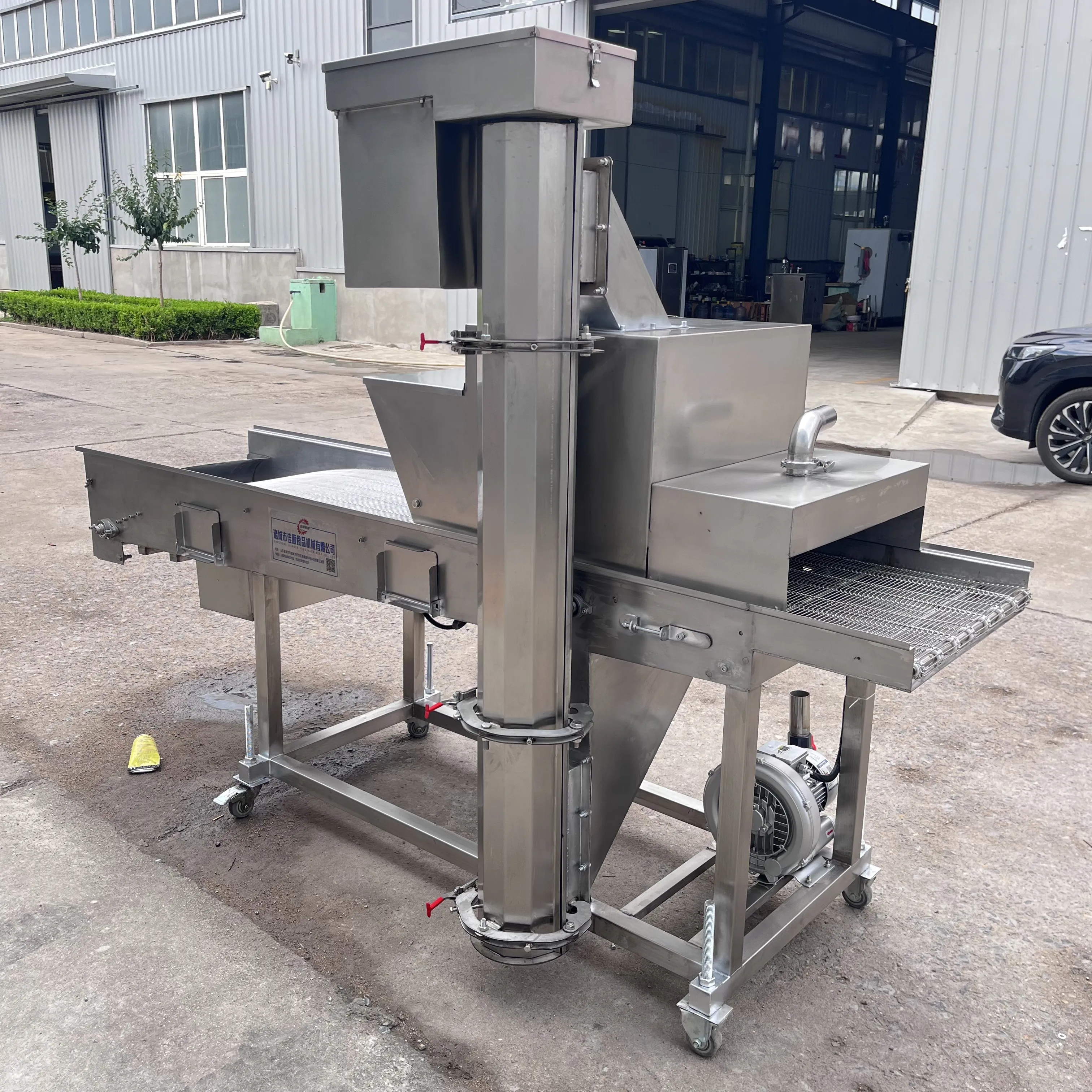 1. تغذیه محصول: سبوس از طریق قیف یا سیستم نوار نقاله به دستگاه وارد می شود. مکانیسم تغذیه برای حفظ جریان ثابت محصول طراحی شده است.